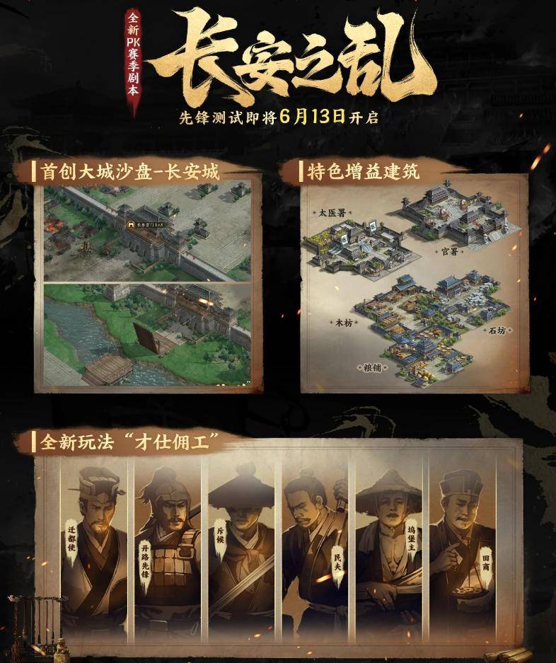 7月新PK赛季剧本“长安之乱”的曝光,则为玩家描绘出令人心驰神往的战术蓝图。该剧本将打造业内首个突破性的城巷立体沙盘,玩家将在街巷交错的长安城中体验前所未有的“千人级巷战”。在“长安城”这个全新战场中,还将新增各类特色增益建筑,势必将呈现出让人耳目一些的深度策略体验。最引人注目的是全新“才仕佣工”玩法,玩家可打造个人专属“第六队”,解锁“开路先锋”、“迁都使”、“斥候”等特殊职业角色,在资源采集、战术侦察、快速迁移等方面获得独特优势,极大丰富战术维度。